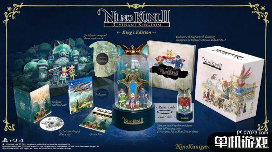 从内容上来看,两种限定版都包含完整游戏、限定铁盒、独占的印画蓝光碟片。国王版还增加了主题黑胶唱片、20厘米高的双面手办一体化音乐盒,除此之外还有由百濑义行和LEVEL-5出品的148页的艺术集。