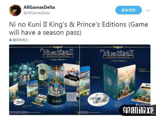 外媒AllGamesDelta今天在推特上公布了《二之国2》的两种限定版内容,限定版氛围“国王版”(King's Edition)和“王子版”(Prince's Edition)。据该媒体所说,万代南梦宫亚洲今天在社交媒体上发布了两种限定版的内容,不过随后他们很快就删除了。