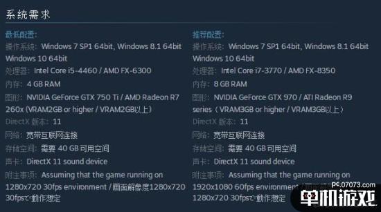 显卡:NVIDIA GeForce GTX 970或AMD Radeon R9 series系列显卡(均需要3GB或更高显存)