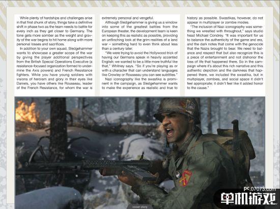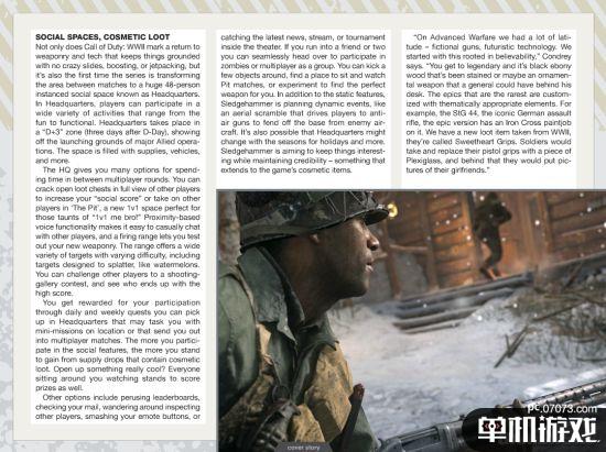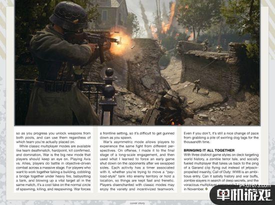 动视暴雪年货新作《使命召唤:二战》通过《Gameinfomer》杂志公布大量新图与情报,包括三大游戏模式,美军抗战欧洲战场的单机战役模式,《死亡空间》精英组成的“大锤”本行恐怖风格的僵尸模式,以及多人联机模式,其中多人联机模式加入支持48人共同社交、拍拖、匹配的“大厅”系统,而且这个大厅居然还有空袭,看来大厅都不安全。