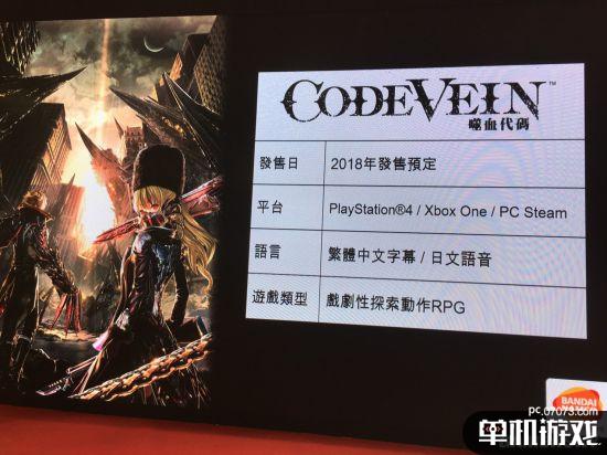 在台湾举行的漫画博览会上,万代南梦宫正式宣布其吸血鬼主题新作《代号血脉(CODE VEIN)》将会推出繁体中文版,并且官方中文版游戏定名为《嗜血代码》,并正式公布将登陆Steam平台。