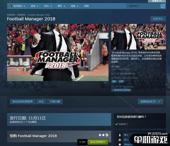 目前《足球经理2018》已经上架了Steam,售价199元并且支持简体中文。目前游戏的PC配置要求也已公布。