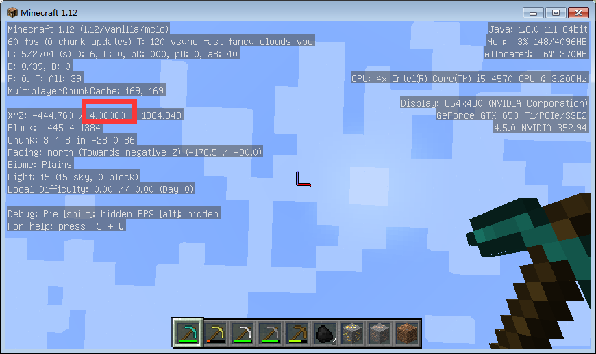 有的新手就问了!我们怎么查看自己所在高度?你在游戏内点击一下f3