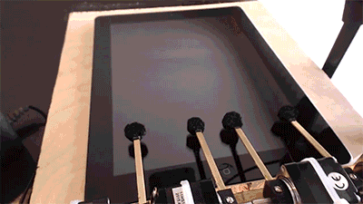然而科技宅并不满足于此:他们觉得用手操作实在太老土了,干脆开发出了针对屏幕的机械设备。有的可以用智能算法,自动点击音游的每个节奏。