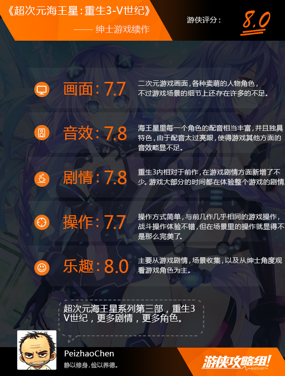 海王星新系列PC已出,从重生1到重生2姐妹时代再到现在的重生3-V世纪,前几部的作品风格不管是在人设上,还是整个游戏带来的感觉,走的都是以女性角色为主,绅士服装,萌化路线,海王星3-V世纪也不例外,同样是女角为主,并且全程卖萌。