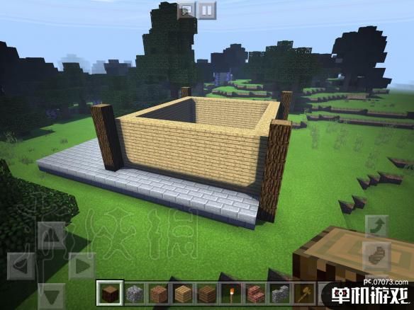 准备好不等色木板以及台阶和羊毛,在这里选择青色。准备铺椽子。