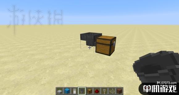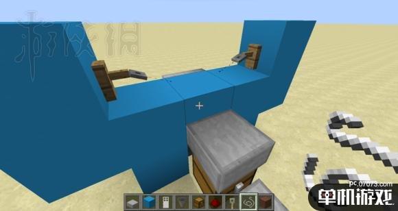 然后在箱子后面一格两边如图放方块,方块后面放一个铁门,一定要是铁门。