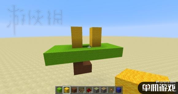 然后准备两个粘性活塞,如图上下分别放一个黏住一个你要当做门的方块。