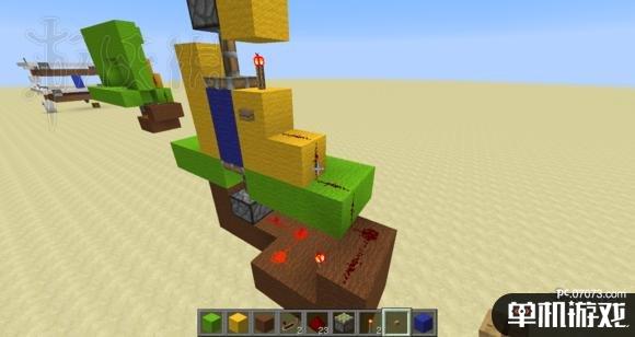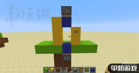 如图插上红石火把,下面连上红石粉。让活塞处于伸出状态,这样门就关上了。