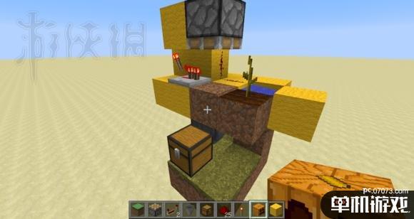 在泥土下面接一个漏斗,漏斗连接小箱子(shift+鼠标右键),这样就算完成了。