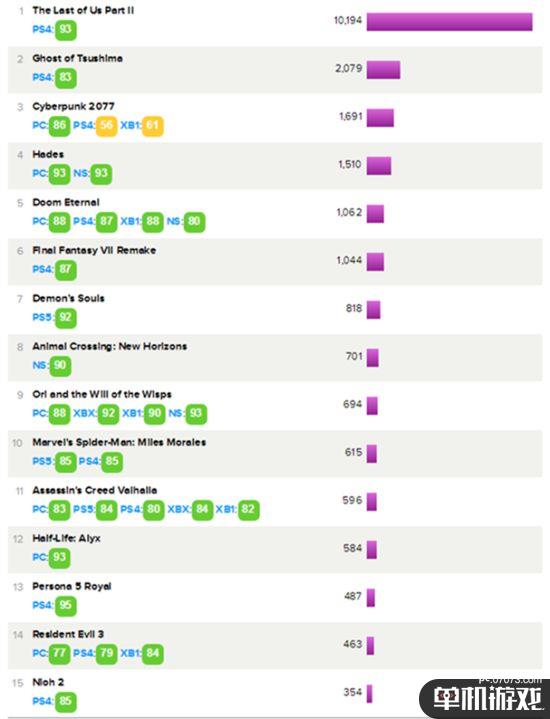评分整合网站Metacritic第十一届,即2020年度的用户评选出炉,一起来看看游戏区的排名。