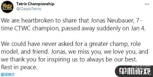 《俄罗斯方块》传奇玩家Jonas Neubauer因突发疾病于1月4日去世。