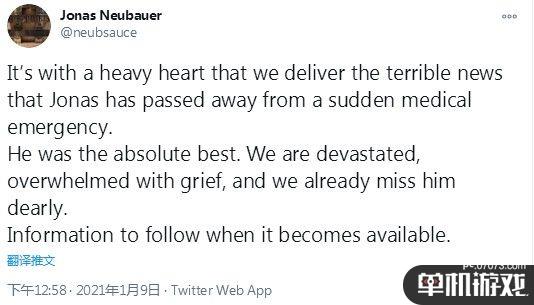 Jonas Neubauer的推特确认了本人已去世的消息。