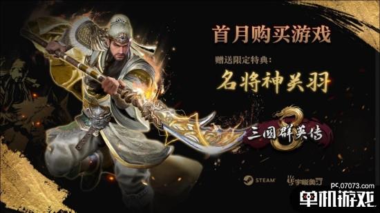 首月购买游戏,可在Steam上免费领取特典:武将神关羽。购齐《三国群英传1-7》代,还可在《三国群英传8》中获赠联动奖励:名将虞姬。