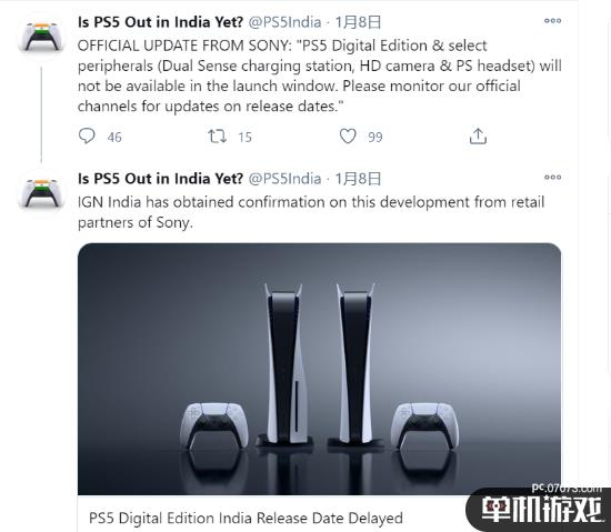 索尼曾在1月1日宣布PS5将于2021年2月2日在印度发售,但是据IGN印度报道,PS5无光驱版将在印度推迟发售,只会发售光驱版。除此之外DualSense手柄充电座,高清摄像头和PULSE 3D无线耳机也将推迟发售。此消息来自于一个推特账号@PS5India,目前IGN印度已通过印度零售商确认了该消息是正确的。