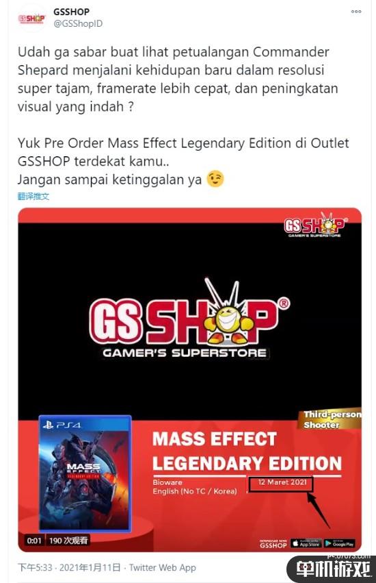 零售商GSSHOP今天提前泄露了《质量效应:传奇版》的发售时间。GSSHOP印尼官方推特发布了一段宣传片,信息显示《质量效应:传奇版》将在2021年3月12日发售。