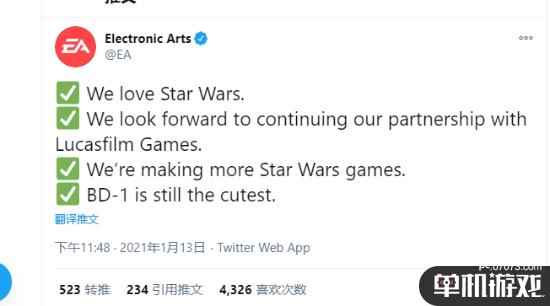 除了与育碧的合作,EA的合作目前尚未终止,他们也将继续为《星球大战》系列贡献一份力量:“EA在未来也将扮演重要的角色,我们将继续与他们合作,虽然目前我们没什么细节要分享,但是我们与EA的团队正在开展许多项目!”