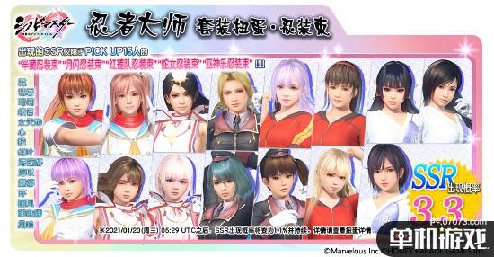 *“忍者大师套装扭蛋・忍装束”将持续至2021/01/27凌晨02:59,但SSR出现概率3.3%将于2021/01/20下午01:29结束。