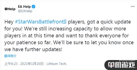 EA官方推特今日表示:“我们目前在增加允许更多玩家进入游戏的能力,希望各位玩家能够耐心等待,如果有更多的更新消息,我们将立即通知各位!”