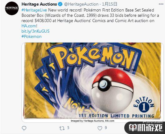 宏吉拍卖公司在1月15日主导了这次拍卖,《宝可梦集换式卡牌游戏(Pokemon TCG)》最早于1996年推出,后在美国由威世智(Wizards of the Coast)负责出版发行。