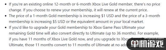 如果玩家已经是线上12个月或者6个月的Xbox Live金会员订阅者,则价格没有变化。选择续订则会以当前价格续订。如果会员选择将当前的会员服务升级为XGPU,那么玩家剩余的金会员时间会直接转换为XGPU(最长36个月),而无需额外费用。