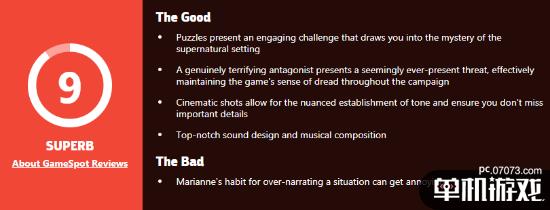 GameSpot今日正式公布了他们对游戏《灵媒》的评分:9分。Gamespot表示:《灵媒》是一款独特的恐怖作品,但其中还包含了引人注目的探索内容,它利用人身创伤的恐怖来创造出一个令人难忘的故事。