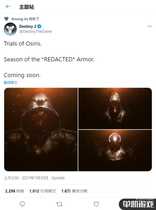 《命运2》官推今天早些时间发布了奥西里斯试炼的奖励装备外观。并称这些“被删除”装甲快要来了。