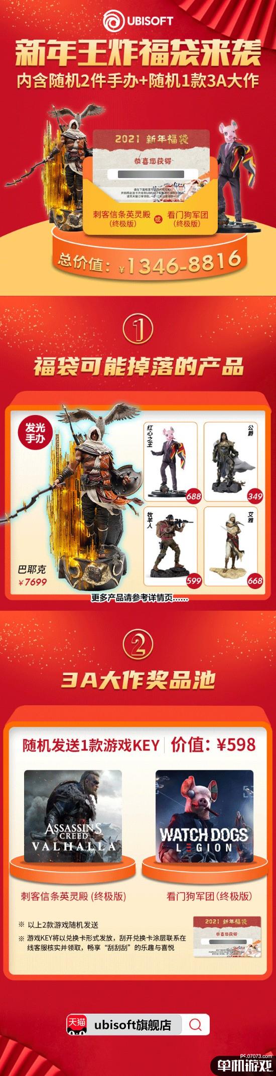 今晚,UBISOFT育碧官方微博宣布推出新年王炸福袋,购买必得2手办+1部3A大作。
