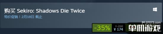 知名魂系受苦游戏《只狼:影逝二度》Steam限时原价结束,折后价174元,平史低。本次折扣活动将于2月18日结束。