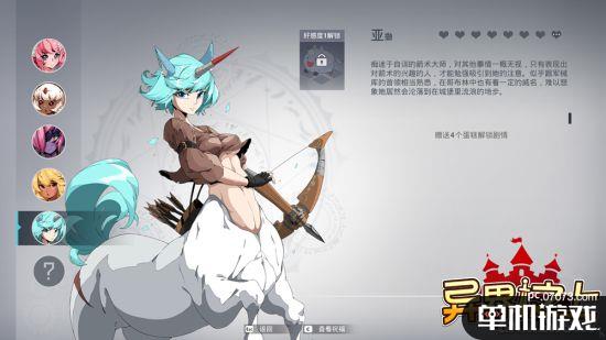 亚撒曾是军械库的军官,被魔剑古拉姆魔化之后,她的身体出现了巨大的改变,如人马般的身躯给了她更稳定的支撑,让她在箭术上有更高的精进空间。不过由于看不惯城堡中哥布林的懒散,她离开了军械库潜心研究箭术,在阿罗娜的帮助下,她获得了最适合自己的弓箭,甚至能从非常远的距离外命中敌人。