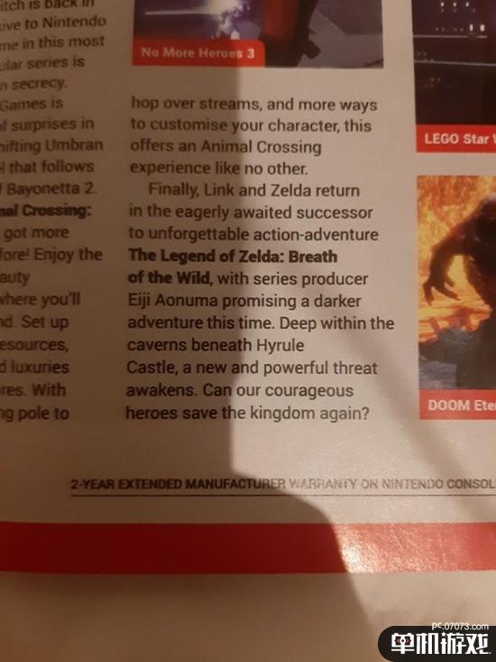 视频的很大一部分展示了林克和塞尔达在地下的场景。许多人想当然地认为这个位置在海拉尔城堡下面,据外媒Nintendo Everything报道,现在这已经在任天堂的官方营销宣传册中被发现了。根据那本小册子上的描述,这两个角色在城堡下面的洞穴“深处”,在那里“一个新的强大的威胁被唤醒”。