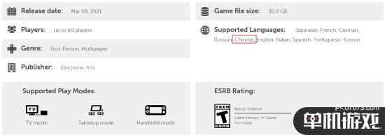 此外,在游戏的语言支持栏上显示游戏将支持中文。