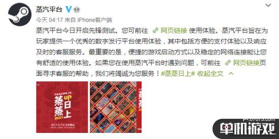 蒸汽平台官博发文称,蒸汽平台旨在为玩家提供一个优秀的数字发行平台使用体验,其中包括方便的支付体验以及响应及时的客服服务。最重要的是,便捷的游戏启动方式以及稳定的网络连接能让您有舒适的使用体验。