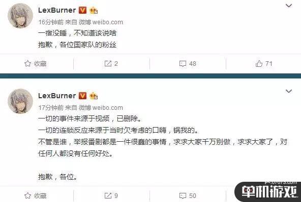 Lex当时道歉的微博