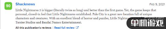 Shacknews为本作给出90分,表示:《小小梦魇2》比前作更大(几乎是两倍长),也更出色。但游戏却保留了一种私人的、封闭的感觉。苍白城是一个充满了独特人物和生物的优秀的新地点。《小小梦魇2》将恐怖与谜题完美地融合在一起,是Tarsier Studios和万代南梦宫的最佳选择。
