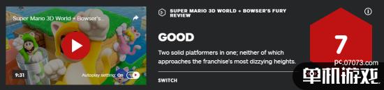 IGN为《超级马里奥3D世界+狂怒世界》给出7分评分,并表示:这两款不错的NS平台作品结合在一起,却并未达到令人满意的高度。