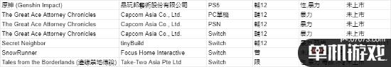 其他新的评级内容包括:《原神》PS5平台版本,本作目前已经登陆PS4平台;Nintendo Switch版本的越野模拟游戏《雪地奔驰》本次也通过了评级,本作已与2020年4月登陆PS4、Xbox One及PC平台。