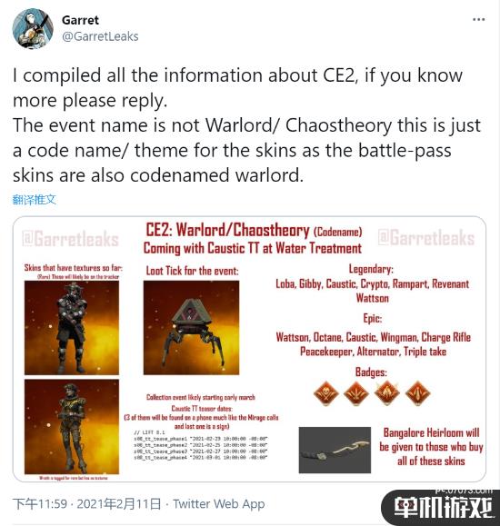 据数据挖掘人员@GarretLeaks爆料称《Apex英雄》新收集活动“Warlord”将于3月上线。他发现了代码里被命名为“Warlord”的活动(并不是正式活动名称,只是个代号),很可能就是下一个收集活动,该活动会带来Loot Tick的新造型,班加罗尔的新传家宝,以及多款新皮肤等。