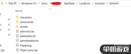 这可能会打开AppDataRoaming文件夹,先备份一次,选择AppData文件夹,然后选择LocalLow,然后是IronGate,最后是Valheim。在那里,你可以找到存放角色、世界和截图的文件夹。复制并粘贴到你电脑上的一个安全位置,比如你桌面上的文件夹。