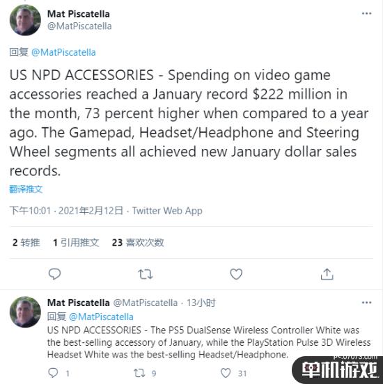 PS5是1月美元销售总额最高的硬件平台,打破了Wii在09年1月创下并一直没被打破的美元销售总额纪录。