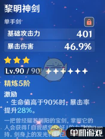 黎明神剑爆伤比较突出,暴击率也算达标只是攻击力比较的低