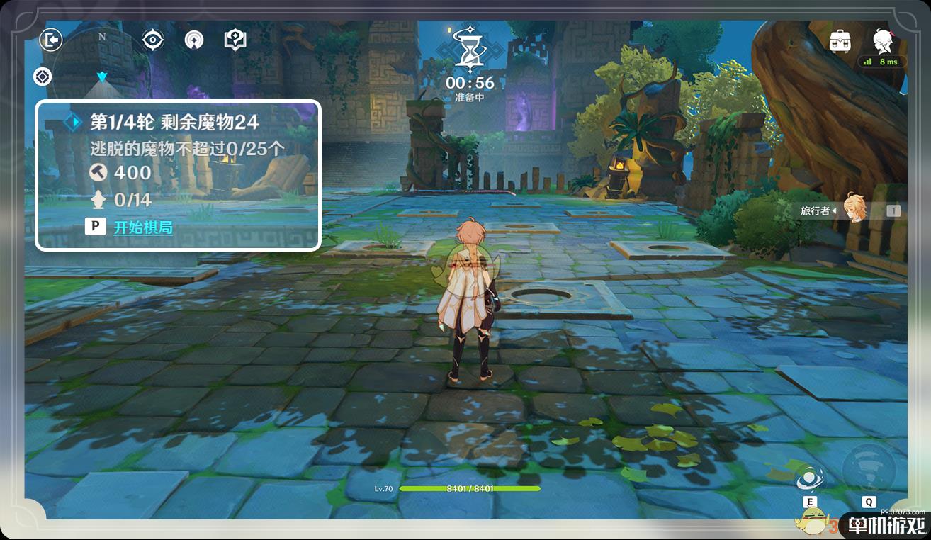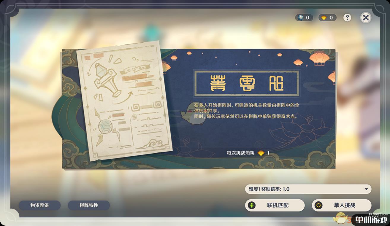 旅行者们可以选择单人挑战或联机匹配参与棋局,联机匹配中支持最多双人联机参与。