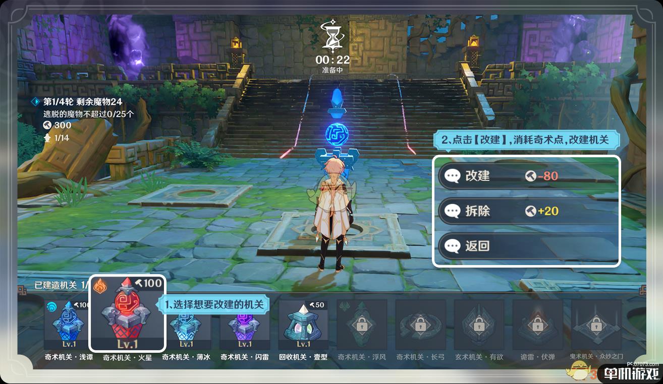 拆除已经建造好的机关会返还部分奇术点。旅行者们也可以消耗部分奇术点来改建已经建造好的奇术机关。