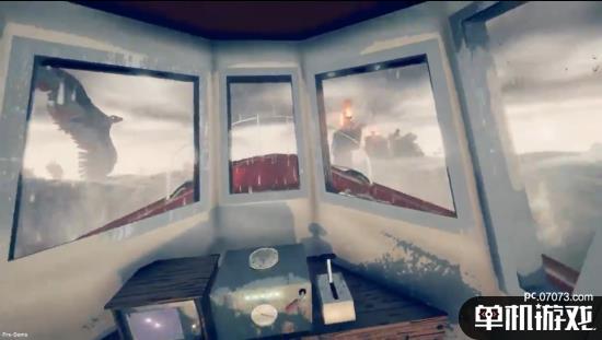 游戏中玩家开着一艘小船,手中只有一柄鱼叉,玩家将见识众多海底生活着的不可名状的巨大生物。