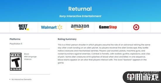 娱乐软件分级委员会(以下简称ESRB)在上周公开了科幻射击游戏《Returnal》的分级信息。ESRB将本作分为T级(适合13岁以上玩家),包含轻度脏话、血液和暴力元素。
