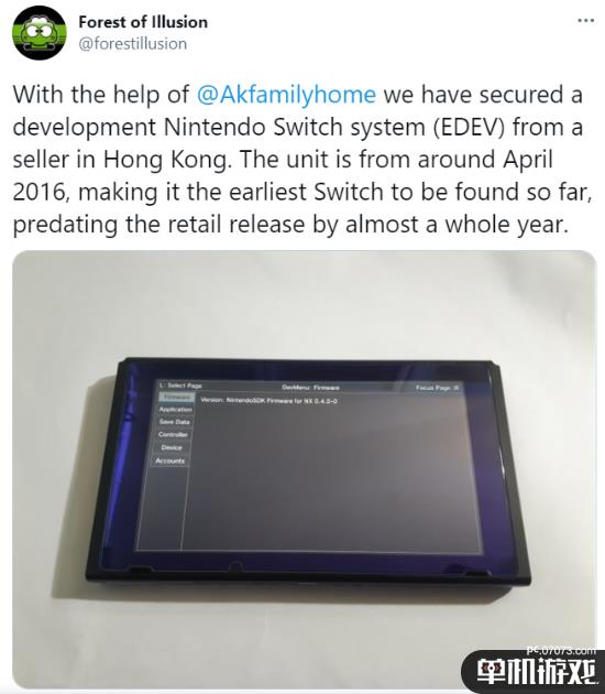 任天堂收藏家团队Forest of Illusions称:“我们从香港的一个卖家那里获得了任天堂Switch的早期开发原型机,这款原型机大约是2016年4月推出的,是迄今为止发现的最早的一款,比正式发售版本几乎早了整整一年。”