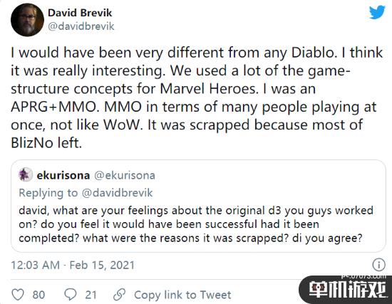 David Brevik还表示,在制作完成《暗黑破坏神2》之后,北方暴雪想创作一款截然不同的《暗黑破坏神》系列新作,一款ARPG+MMO游戏,但由于北方暴雪出现的各种问题,导致这个版本的《暗黑破坏神3》夭折了。