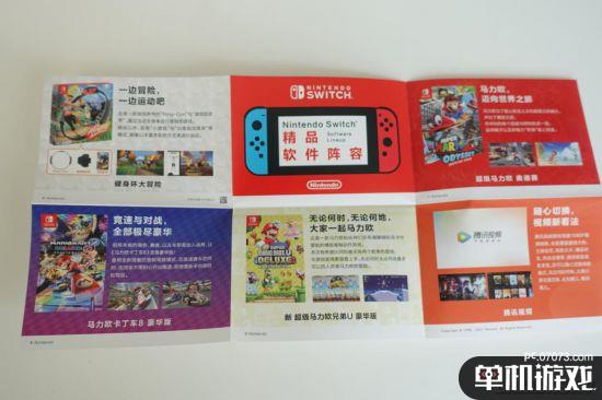 在这一层里还配有相应的电源适配器、高速的HDMI线,以及一众说明书、保修卡。其中还夹杂着一张游戏宣传彩页,上面是目前已经上架的精品国行NS游戏。