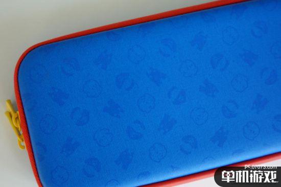 定制版的收纳包出现在第二层。这款定制的收纳包,在功能上和普通的收纳包没什么区别,定制主要突显在外观方面。正面是红色,反面是蓝色来源于马力欧的服装颜色,在包的正反两面,分别印有相应的主题花纹,包括马力欧的手套、帽子胡子以及背带裤。