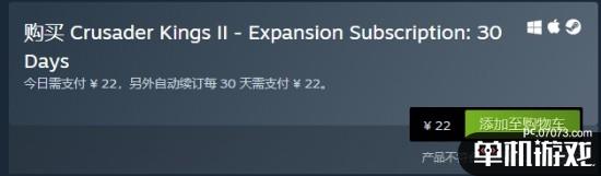Paradox为《十字军之王2》推出了为数众多的DLC,而如果你想要买下全部的《十字军之王2》DLC,恐怕得花上一千余元。而根据P社新推出的订阅服务,你可以通过支付每月22元的月费来体验全部的《十字军之王2》内容(《十字军之王2》游戏本体可以免费领取)。